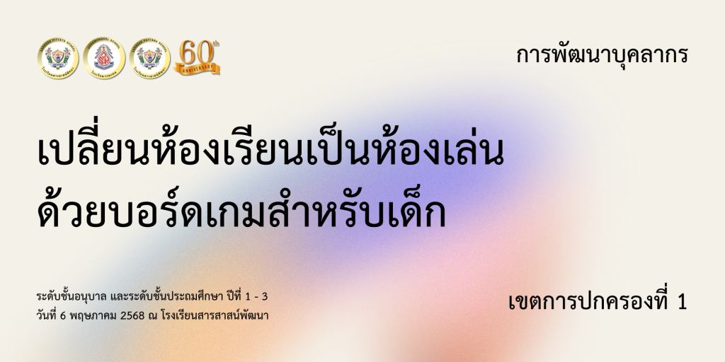 ในหัวข้อเปลี่ยนห้องเรียนเป็นห้องเล่นด้วยบอร์ดเกมสำหรับเด็ก ระดับชั้นอนุบาล และระดับชั้นประถมศึกษา ปีที่ 1 – 3 วันที่ 6 พฤษภาคม 2568 ณ โรงเรียนสารสาสน์พัฒนา #เขตการปกครองที่1 #60thAnniversary #SchoolofSARASAS #โรงเรียนสารสาสน์พิทยา #โรงเรียนสารสาสน์พัฒนา #โรงเรียนวรมงคล #Sarasas #SarasasPittayaSchool #SarasasPattanaSchool #Varamongkolschool