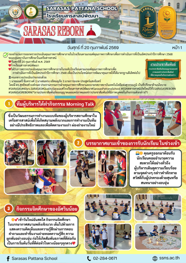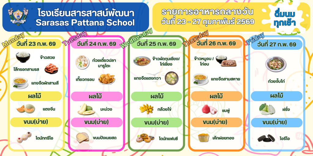 ประจำวันที่ 23 – 27 กุมภาพันธ์ 2569 #Sarasas #Sarasaspattana #Sarasaspattanaschool #SarasasArea1
