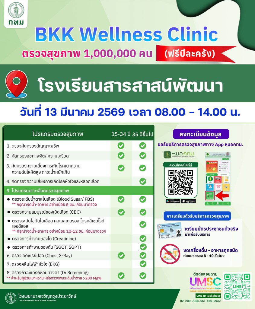 ลงทะเบียน ตรวจสุขภาพฟรี ณ โรงเรียนสารสาสน์พัฒนา ลงทะเบียนฟรี ไม่มีค่าใช้จ่าย ตรวจเช็กสุขภาพเบื้องต้น เพื่อความมั่นใจในสุขภาพของคุณ เพราะสุขภาพที่ดี คือพลังสำคัญของการเรียนรู้และการทำงาน ดูแลตัวเองวันนี้ เพื่อพร้อมดูแลลูก ๆ และนักเรียนของเราในทุกวัน #Sarasas #Sarasaspattana #Sarasaspattanaschool #SarasasArea1 #SarasasReborn